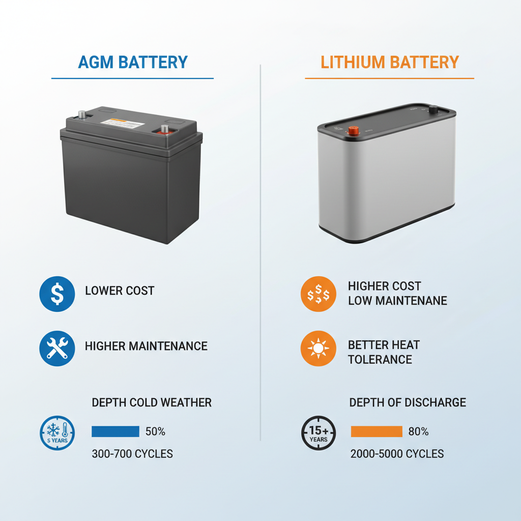 Temperature tolerance is another win. AGM batteries handle cold better than lithium, making them solid choices for cabins or northern climates.