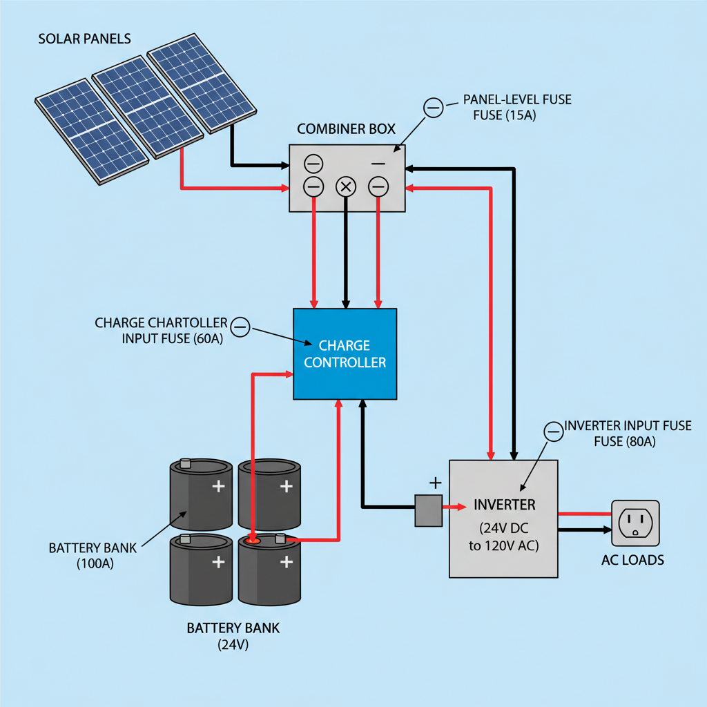 Start with the basics: fuse every panel string, fuse your battery bank, and fuse your charge controller input. Use proper DC-rated components and size them correctly. The $50 you spend on fuses today could save you thousands later.